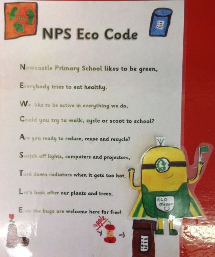 At Newcastle Primary School, we pride ourselves on being Eco Friendly! We are trying hard to reduce our waste, recycle and save energy. The Eco Warriors in each class take their role very seriously.